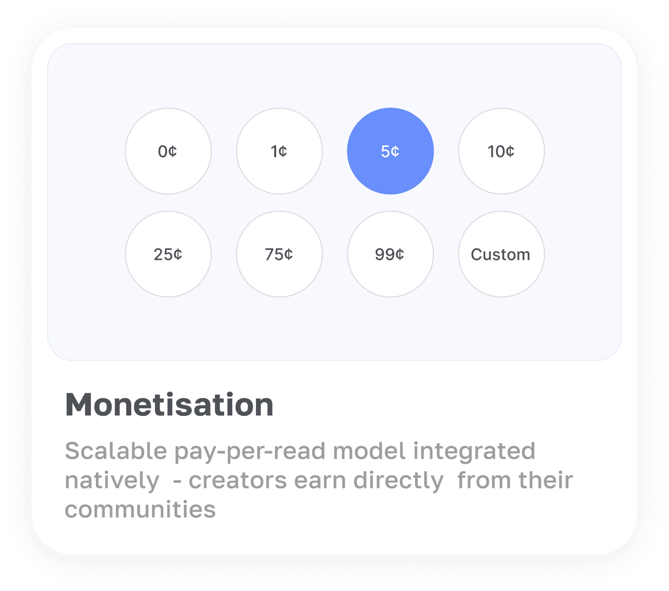 The final product structure introduced a clear model for content creation, discovery, and monetization. Creators can publish posts and build audiences while users explore and interact with content through structured feeds and discovery mechanisms. Monetization features are integrated into the platform, allowing creators to generate revenue directly from their communities. The design system ensured consistency across the platform while enabling scalability as new features were introduced.